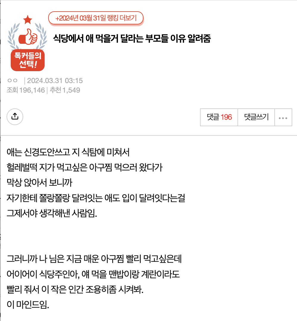 식당에서 애 먹을거 달라는 부모들 이유 알려줌