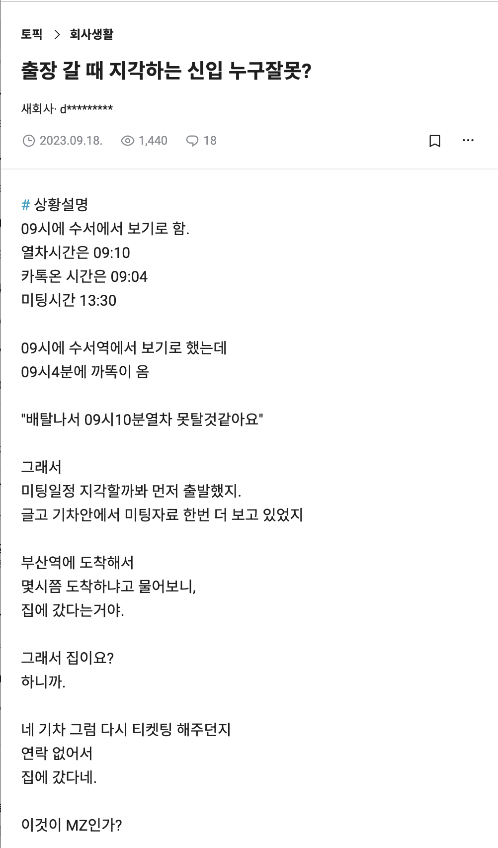 출장 갈 때 지각하는 신입 누구잘못? .blind