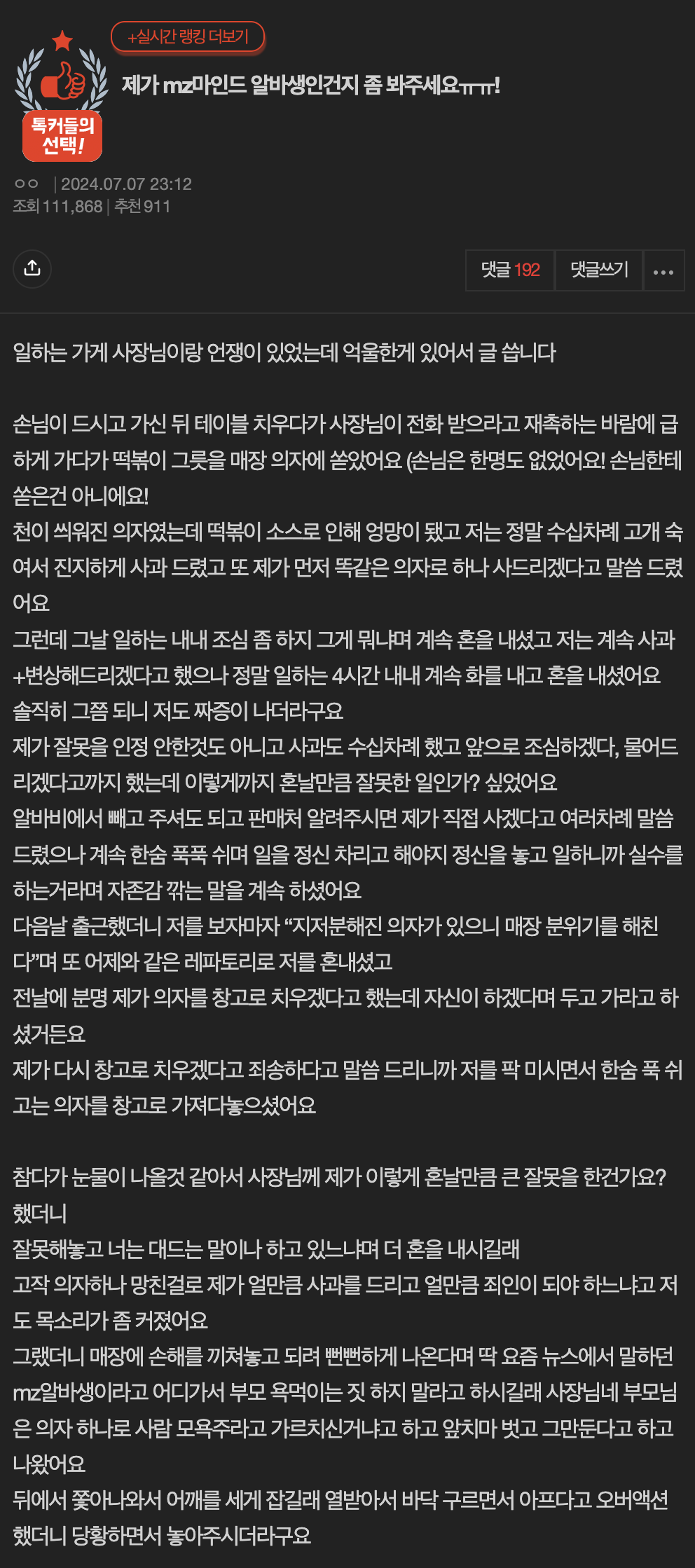 제가 mz마인드 알바생인건지 좀 봐주세요ㅠㅠ!
